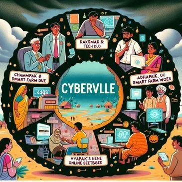 He meets his friend Cyber Laxmi who resides in a modern village named Cyberville. Cyberville had been particularly focusing on innovation in agriculture, education, and small-scale industries. They use all modern means to make themselves truly global. To name a few, they have automated irrigation systems, experiential learning mechanism integrated with global standards, online e-commerce websites.