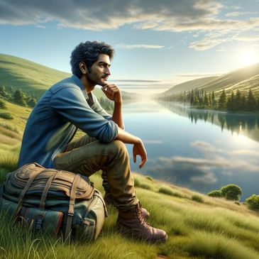 🥣 Needing a break, he found a quiet hilltop overlooking a peaceful lake, where everything seemed calm and slow. The still water looked like a mirror, reflecting the clear sky above. Sitting on the cool grass, Champak noticed his hands feeling tingly and numb, his mind full of confusion. He took deep breaths, tried to calm his racing thoughts about the future and all the new things he had learned.